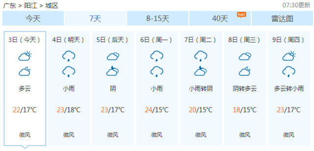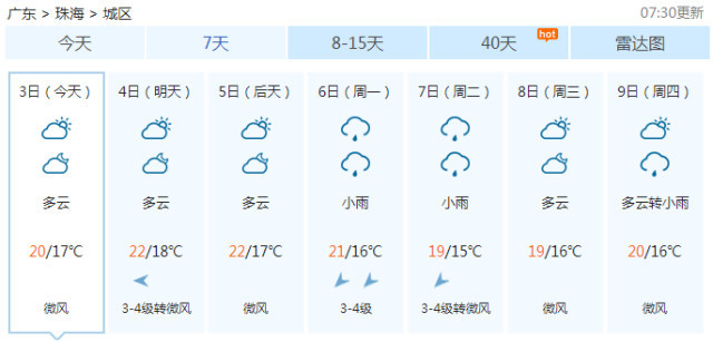 具體到廣東,今日,全省大部分地區(qū)晴到多云,明日起全省云量逐漸增多,西部市縣有分散小雨,后日粵北有小雨。