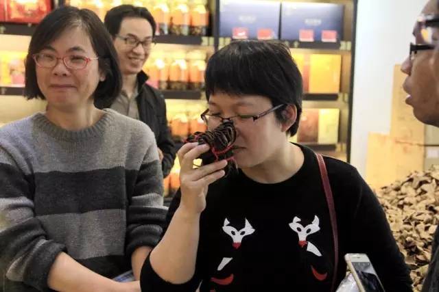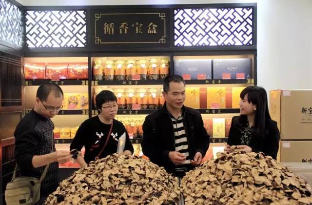 ▲老師們?cè)谛聦毺脙S光總店內(nèi)感受新會(huì)陳皮干貨產(chǎn)品