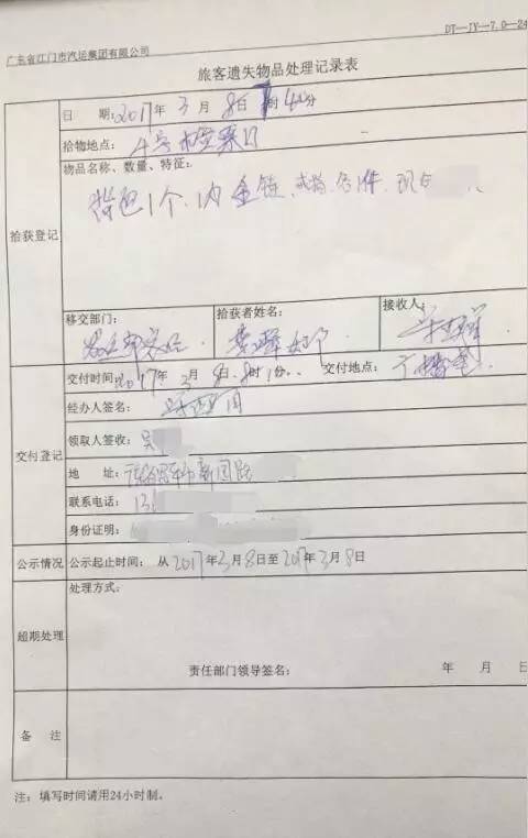 “我當(dāng)時(shí)一下子就蒙了,心里很慌。”陳瑞瓊在車上十分忐忑,擔(dān)心自己的背包以及里面的金飾、現(xiàn)金被人拿走。“關(guān)鍵里面有我送給外甥夫婦的金飾,丟失了,我覺(jué)得難以交代啊?!标惾瓠傠S后求助司機(jī),并向恩平汽車總站撥打電話說(shuō)明情況,當(dāng)?shù)弥撜締T工龔翠娜已經(jīng)將陳瑞瓊遺留的背包放到車站廣播室內(nèi)登記保管好后,陳瑞瓊心中的大石才得以落下。