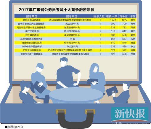 新快報記者了解到,今年省考最“熱門”的職位為惠州市惠東縣港口財政所的港口濱海旅游度假區(qū)管理委員會財政所科員一職,擬招1人,共有1072人繳費報考。而佛山市則連續(xù)三年蟬聯(lián)了“競爭最激烈考區(qū)”的“寶座”,今年該考區(qū)的競爭比達到46.52:1。
