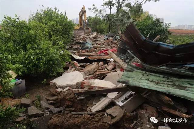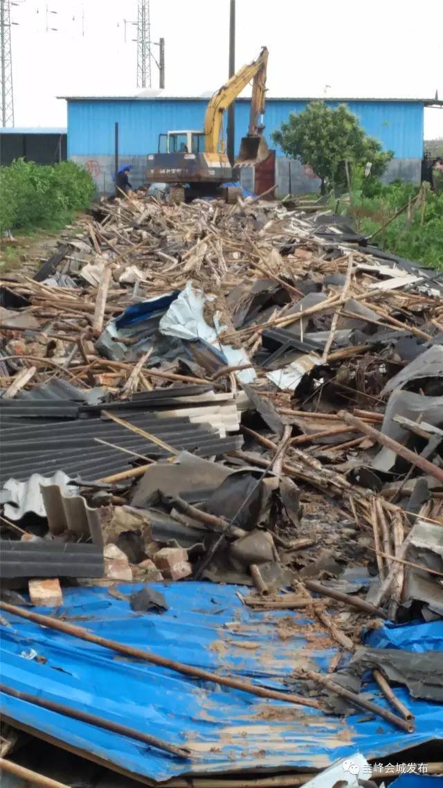 雖然暴雨不斷,但工作人員依然堅(jiān)持開展專項(xiàng)整治行動,用了一天的時間,先集中拆除了東甲村花場雞農(nóng)莊已補(bǔ)未拆的構(gòu)筑物及深茂鐵路連接線用地的相關(guān)構(gòu)筑物,并對江門大道改河用地進(jìn)行清表,然后兵分兩路,自北向南分別沿著江門大道主路和深茂鐵路主路,對東甲村“兩路”征地已補(bǔ)未拆的構(gòu)筑物和旁邊違法搭建的部分構(gòu)筑物進(jìn)行拆除,共拆除豬舍22752平方米,房屋、棚架及違法搭建物10625平方米,保障了東甲村“兩路”及水利設(shè)施的用地建設(shè)工作。整個專項(xiàng)整治行動較為順利,達(dá)到了預(yù)期的效果。