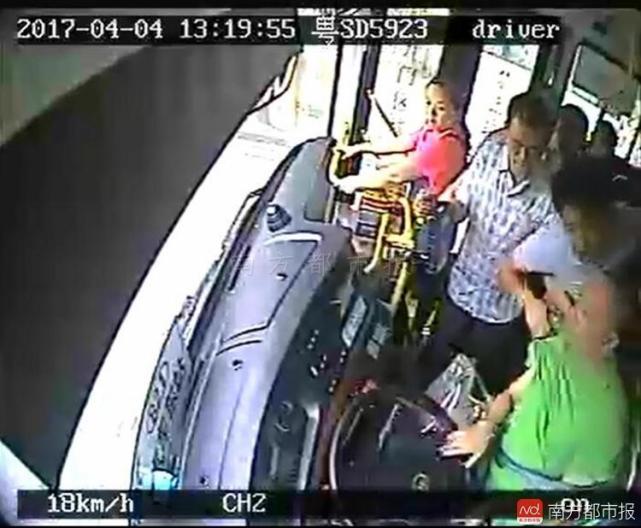 車內(nèi)監(jiān)控錄像顯示,激動(dòng)的男子隨后從車廂中間穿過人群沖向駕駛室位置,猛扯莫師傅,正在駕駛的莫師傅遭此拉扯,手中方向盤失去了控制,公交車也隨即偏向人行道,幸好道上并無行人,車上也無乘客受傷。莫師傅隨后住方向盤并及時(shí)停穩(wěn)車輛。