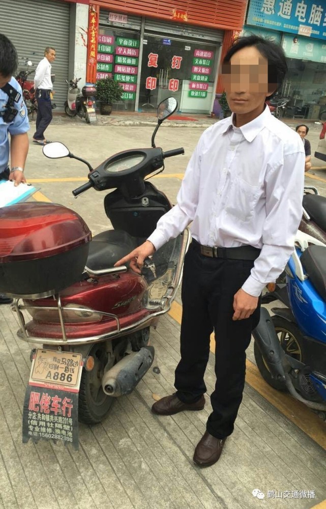 當日,交警機動中隊正在鶴城鎮(zhèn)市場附近路段執(zhí)勤,一輛掛HK8888號牌摩托車經過執(zhí)勤民警身邊,若無其事。民警立即將車攔下,并要求駕駛人出示相關證件接受檢查。當事司機是一名60歲左右的男子,經詢問,司機秦某承認自己是沒有機動車駕證的,一直“安心”開著這輛自制號牌的車上路。