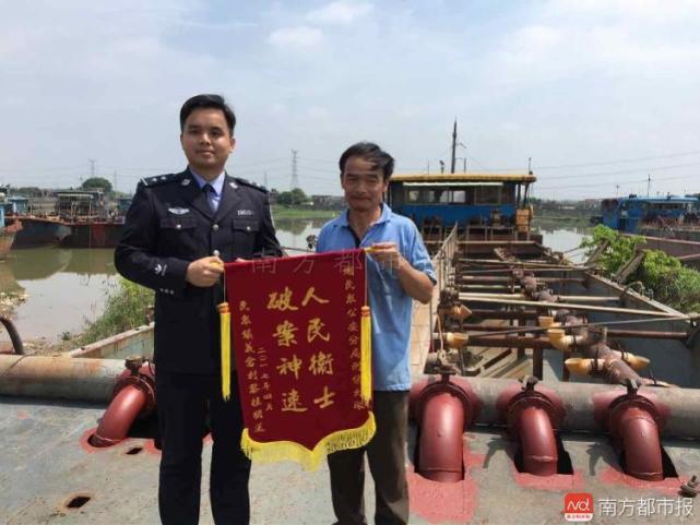 黎某明更沒(méi)想到的是,自己的船這么快就找回來(lái)了。今天,黎某明向民眾公安分局送上錦旗致謝。