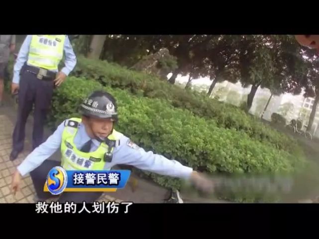 據(jù)民警介紹,是救他的人的腳劃傷了,所以有血。