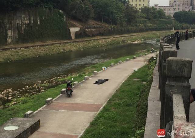 南都記者隨后趕至事發(fā)地,這是一條沿著愛南路流經(jīng)龍崗中心城往惠州走向河流,在該橋下游100米處的沿河公路和景觀道都已拉起警戒線,尸體用黑色袋子裹住,圍著數(shù)位民警正在現(xiàn)場(chǎng)勘查。