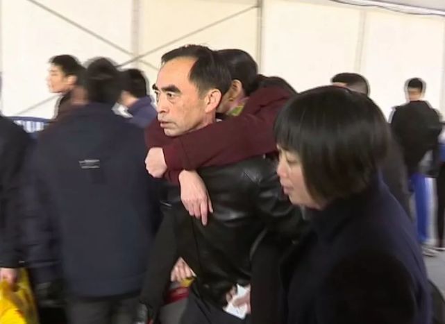 在佛山火車站,有這樣一對特殊的身影:徐先生背著妻子,趕往江西的列車。