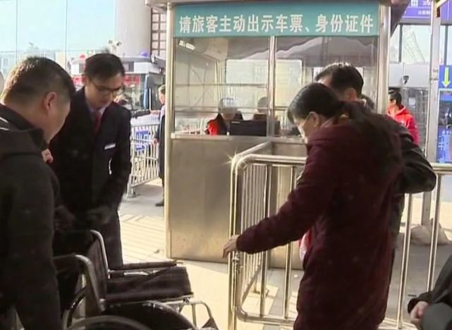 妻子患病,卻要奔赴起碼十二個小時的旅途。車站的工作人員見到后,主動送上了輪椅。