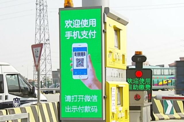 車到了收費(fèi)站,只需拿出通行卡插入自動繳費(fèi)機(jī)里,再拿出手機(jī)打開移動支付的付款碼對著攝像頭掃一掃。