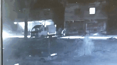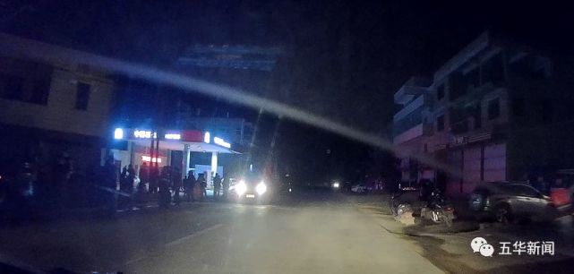 從附近店家的監(jiān)控視頻顯示,在2月7日晚上10點左右,位于橫陂加油站附近,往水寨方向一輛小車飛馳而過,路旁停放的五十鈴白色貨車被猛烈撞擊后旋轉(zhuǎn)180度后,接著旁邊行走在路邊的其中一位行人被撞飛。