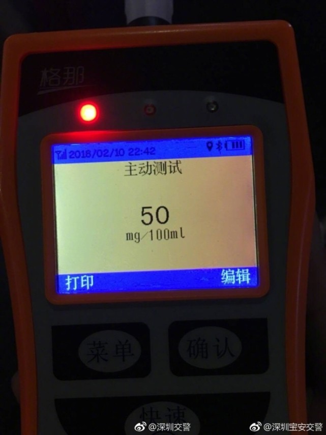 深圳交警今天(2月11日)0點(diǎn)46分通報(bào),寶安石巖交警中隊(duì)在轄區(qū)開展獵虎行動(dòng),查獲一宗酒后駕駛(酒精含量為50mg/100 ml)。